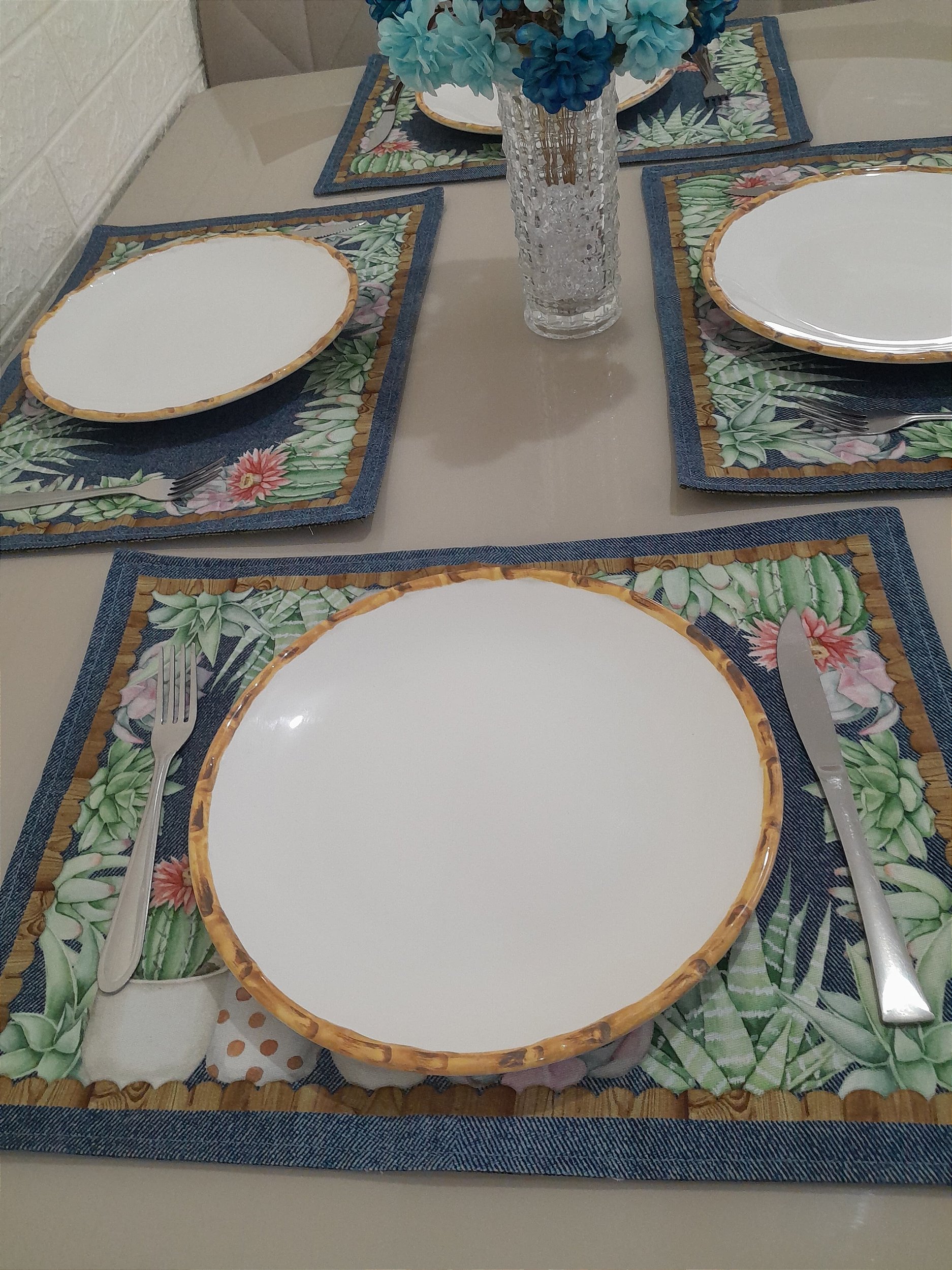 • Jogo americano confeccionado em sarja impermeável